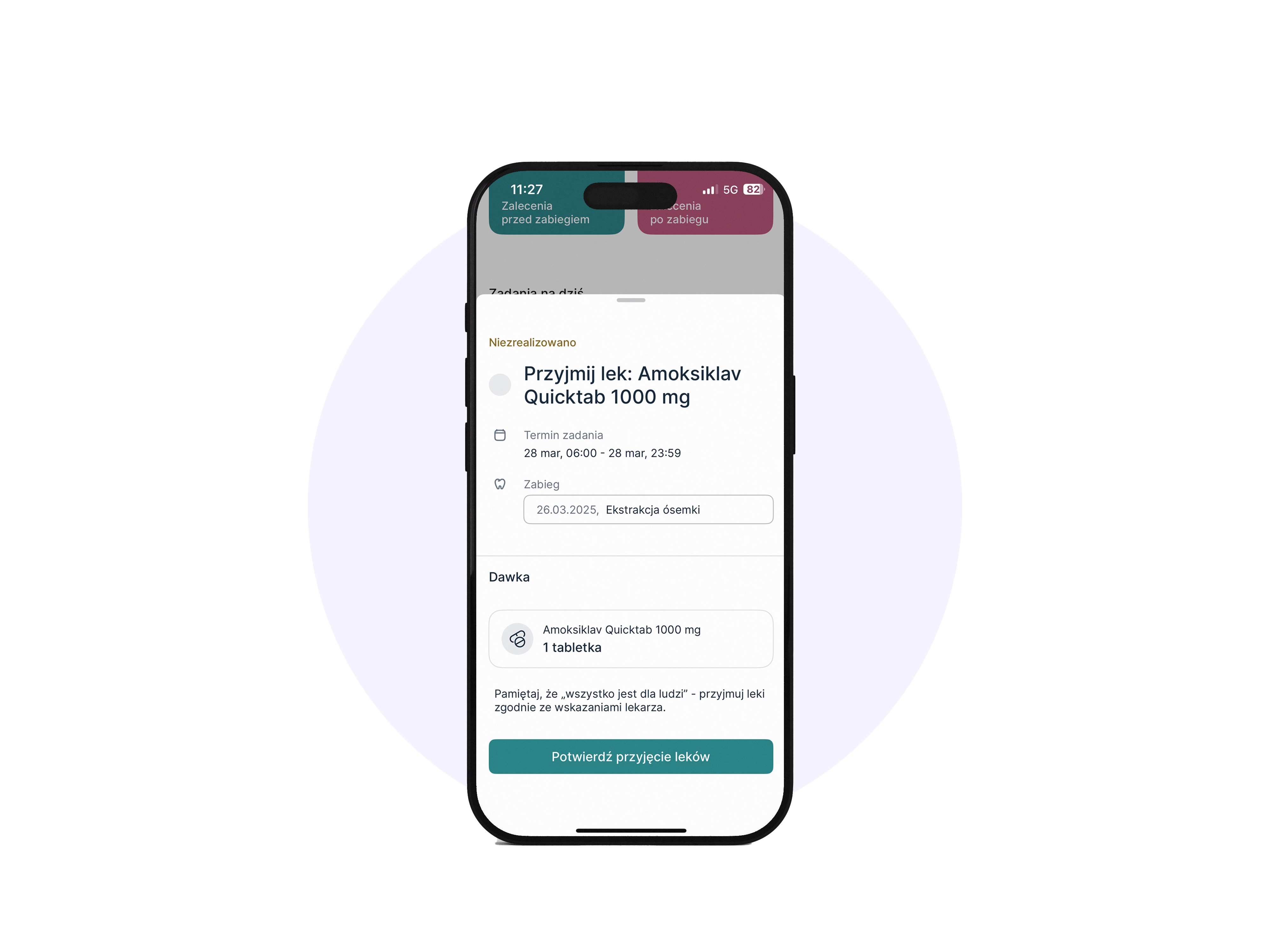 Aplikacja przypomni Ci o ważnych krokach, które należy podjąć przed i po zabiegu, aby leczenie było jak najbardziej skuteczne i uniknęło komplikacji.