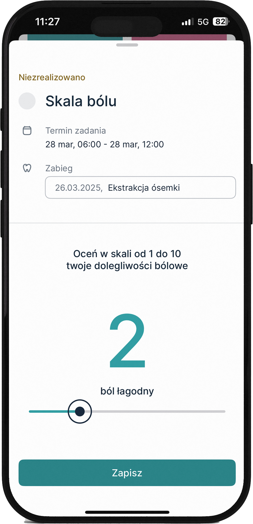 Znajdziesz tu prostą skalę bólu, którą możesz wypełniać codziennie. Dzięki temu Twój lekarz będzie mógł śledzić postępy w leczeniu i reagować na zmiany w Twoim stanie zdrowia.