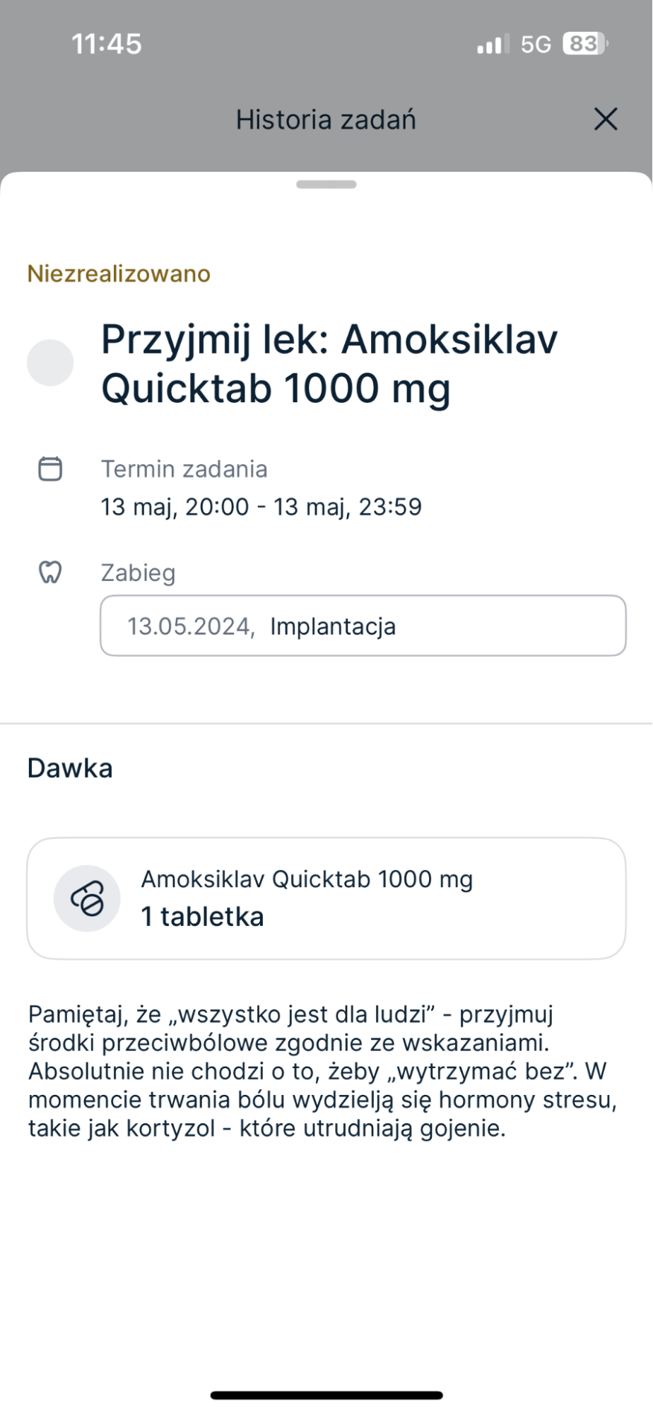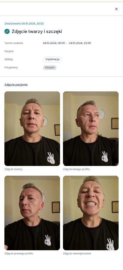 - Zdjęcia kontrolne – Możliwość przesyłania zdjęć wewnątrz- i zewnątrzustnych, które pomogą lekarzowi śledzić postęp gojenia i szybko reagować w razie potrzeby.