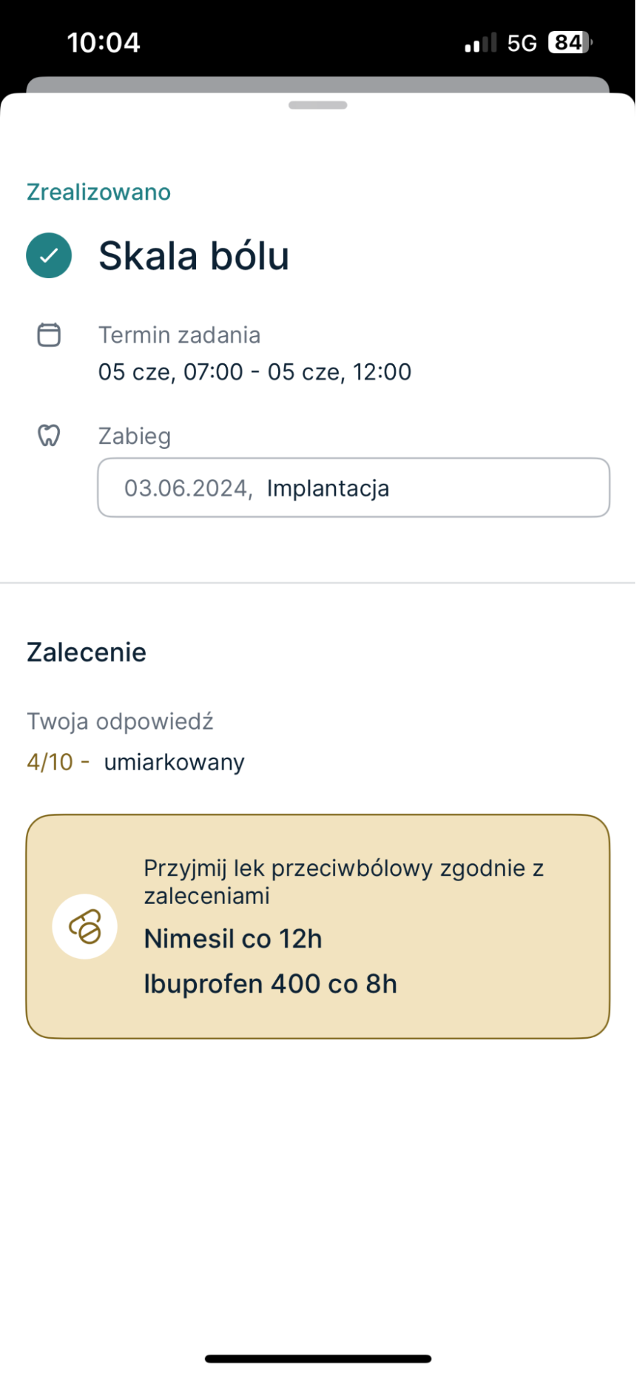 - Skala bólu – Skala bólu umożliwia codzienne monitorowanie stanu zdrowia. W przypadku nasilenia objawów, możliwa jest szybka konsultacja z lekarzem.