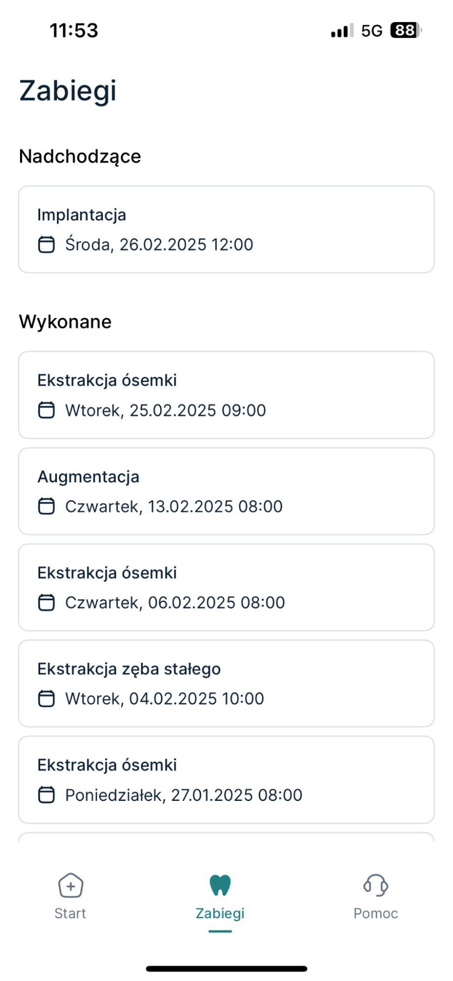 - Historia zabiegów chirurgicznych – W jednym miejscu znajdują się wszystkie szczegóły dotyczące odbytych i zaplanowanych zabiegów chirurgicznych oraz przeprowadzonych procedur.